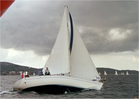 Erster Wettfahrttag war dann der folgende Sonntag. Pünktlich um 0800 Uhr fanden sich 35 Skipper, Wettfahrtleitung und Organisatoren zum Briefing. Regattaleiter Nikolaus Königshofer begrüßte die Teilnehmer und gab die letztgültigen Segelanweisungen aus; Jury-Vorsitzender Manfred Mosing (YCA) ging kurz auf einige besonders wichtige Regeln, speziell zum Start und zum Runden von festen Bahnmarken ein. Nach Klärung aller Fragen wurden die Bojen vom "Bojenleger" Charly Landenhammer ausgelegt. Bei bewölktem Himmel und leichten, aber stetigen Winden aus Südost wurde die erste Wettfahrt nahe der Hafeneinfahrt der Marina von Sukosan (Rt Podvara) pünktlich um 1030 Uhr gestartet. Nach kleinen Schwierigkeiten in der Nähe des Startschiffes (3 Proteste) konnte die ca. 9,5 sm lange Wettfahrt über 4 Bahnmarken nach etwa 2 Stunden erfolgreich beendet werden. Die Windverhältnisse hielten an, sodaß am selben Tag noch zwei weitere Wettfahrten mit gleichem Kurs gesegelt werden konnten. Kurz nach Einbruch der Dunkelheit waren wieder alle Boote in der Koje. Die schwierigen Protestverhandlungen dauerten bis nach 2000 Uhr an, unmittelbar danach konnten die mit Spannung erwarteten vorläufigen Ergebnislisten ausgehängt werden.