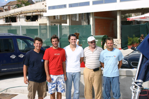 Am Mittwoch Abend erscheint die Kommission (Obmann Imre B), los geht’s wieder mit dem Segeln. Bei leichtem Wind erledigen wir die Manöver, alledings gibt es ein bisschen Prüfungsstress, ganz so gut wie beim Üben geht es dann doch nicht. Trotzdem, alles ok, wir starten zur Nachfahrt. Wieder aus dem Süden kommend gehen wir nach Tijascica, warten die Dunkelheit ab, dann unter Segel nach Nicola auf Murter, später Jezera, dann Tribunj, Erholung gegen Morgen in Vodice. Am nächsten Tag geht’s, bei leichter Bora wieder unter Segel nach Prvic, von dort nach Zlarin (Anlegemanöver bei Bora und Seegang – puh), und schließlich ist die Kommission doch zufrieden: Alle Kandidaten haben bestanden!