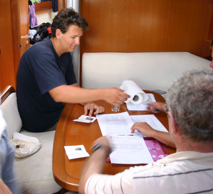 Gechartert wurde eine Grand Soleil 40 Regatta (die hübsche „Stella“) von der in Primosten und Sibenik ansässigen Charterfirma NCP vom 3. bis zum 17. September, weil auf diesem Boot gleich in der zweiten Woche zwei Prüfungen und drei weitere Übungstage geplant waren.