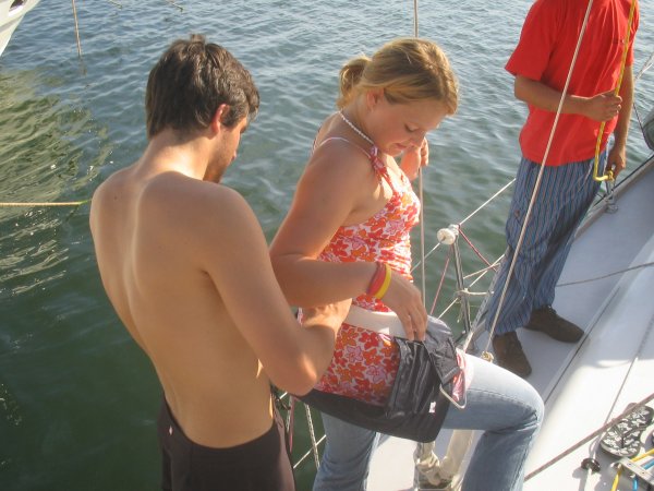 Drei Tage wird geübt, speziell beim Segeln sind wir sehr fleißig: Jeder muss die Boje mindestens drei Mal fangen, alle paar Stunden reffen wir das Großsegel. Auch bei Nacht sind wir unterwegs, steuern Zlarin, Tijascica, Kapriie, Tribunj, Vodice an. Unter Segel gehen wir Anker auf, unter Segel gehen wir an die Boje in der Potkucina, unter Segel gehen wir vor Anker in Prvic. Das Wetter ist gut, immer Wind, nicht zu viel. Als Abschlussübung gibt es noch ein paar Stunden Spinnaker mit mehreren Halsen. Jetzt sind wir für die Prüfung bereit (glauben wir).