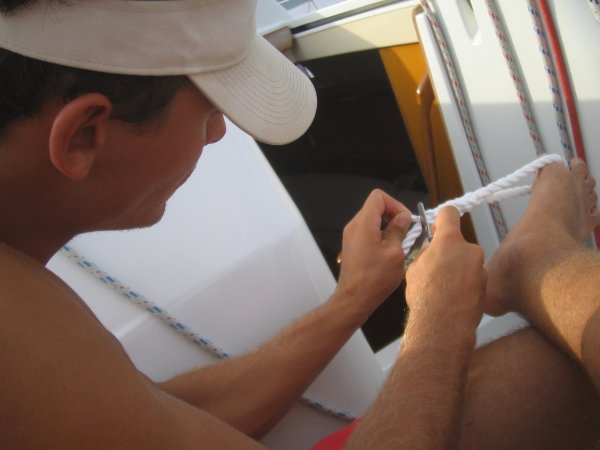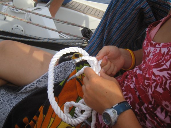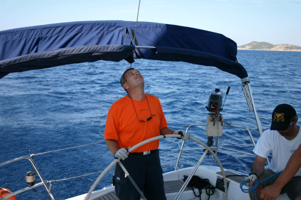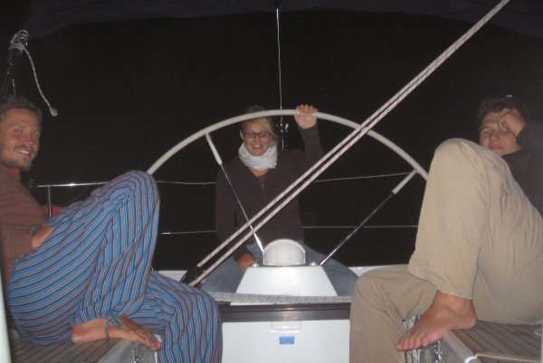 Am Dienstag, strahlend blauer Himmel, hielt uns nichts allzu lange in der Koje und gleich nach dem Aufstehen übten wir die Ankermanöver gleich in Zlarin, bevor wir nach Sibenik fuhren und nach langjährig bewährter Methode die Anlegemanöver an der Hafenmole durchexerzierten. Der S-Drive-Antrieb der Stella ließ den Radeffekt auf ein Minimum schrumpfen und so konnte ein wichtiger Aspekt der Motormanöver leider nicht demonstriert werden. Um 1340 waren alle sicher genug und wir machten uns auf Richtung U. Potkucina. Die Zeit, die wir zwischen den Inseln vor Sibenik und im Murterer Meer segelten, nutzten wir, die Navigationsverfahren genauer durchzugehen und auch der Sextant kam zum Einsatz. Nachdem wir alle unsere Gegner zumindest einmal überholt hatten, drehten wir um Richtung Kakan, wo wir kurz vor 1700 unter Segel ankerten. Es wurde gebadet, gekocht und ausgeruht, denn die Nachtfahrt mit Nachtansteuerungen stand jetzt auf dem Programm. Bei Sonnenuntergang und völliger Windstille legten wir ab und navigierten im Laufe der Nacht durch die Inselwelt vor Sibenik, bis wir um kurz nach 0200 in der Bucht von Primosten ankerten, um ein paar Stunden zu schlafen.