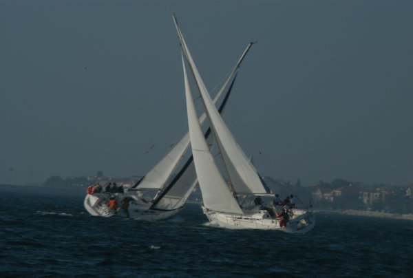 Auch am zweiten Wettfahrttag bleibt der günstige Wind aus Nordwest mit 2 bis 4 Bft erhalten. Schmidleitner verlegte die Regattabahn in den Bereich nördlich der Marina Biograd - eine gute Entscheidung, die wiederum drei spannende Wettfahrten von etwas über 6 Meilen ermöglichte und auch eine übertriebene Durchdringung mit den Feldern zweier gleichzeitiger anderer Veranstaltungen verhinderte.