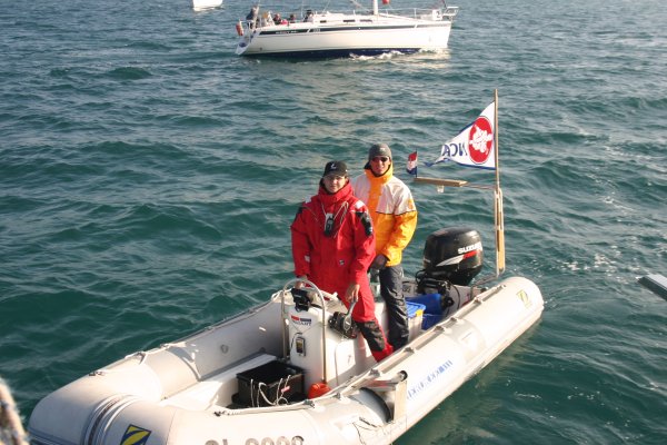 und vor allem die Firma Sea Tow, die ein starkes (gelbes) Motorboot mit zwei Mann Besatzung völlig kostenfrei zur Verfügung gestellt hat. |