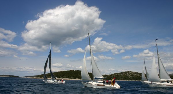 Bei Sonnenschein wurde dann die alljährliche Regatta um exakt 1300 Uhr gestartet. 14 Boote waren am Start; es fehlten Baluga (Achterstag nicht einwandfrei repariert) und Lucija 5 (Skipper Konrad Huber), die mit Getriebeschaden ausgefallen war. Bora bis über 20 kn machte zwei Reffs notwendig, was aber nicht alle sofort wußten (oder auch gar nicht hatten). Ohne Fehlstart und ohne Kollisionen ging es dann bei frischer Bora von der Einfahrt Rogoznica über Hrbosnjak bis Rozenik, wo - nicht ganz unerwartet - Vito (nach 2 h 50 min) vor Stella und First Class den Kurs beendete. Für die meisten Boote gab es dann noch ein Treffen in Skradin, einige blieben noch draußen, im Raum Prvic - Tijat - Kaprije.