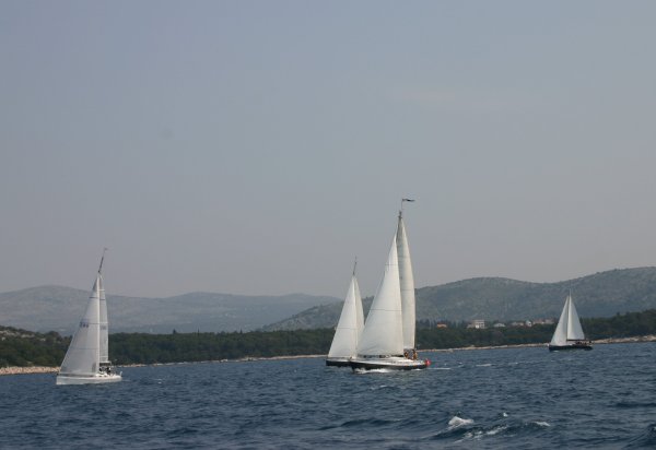 Bei Sonnenschein wurde dann die alljährliche Regatta um exakt 1200 Uhr gestartet. 12 Boote waren am Start; ohne Fehlstart und ohne Kollisionen ging es dann bei schwacher Bora von der Einfahrt Rogoznica über Hrbosnjak bis Rozenik, wo - nicht ganz unerwartet - Stella (nach 3 h 17 min) vor Dida Ivo und Lucija den Kurs beendete. Die Boote trafen sich dann noch an der fast schon heimatlichen Mole von Sibenik, um dann nach Skradin oder in den Raum Prvic - Tijat - Zlarin zu laufen und dort zu übernachten.