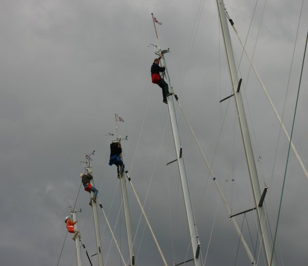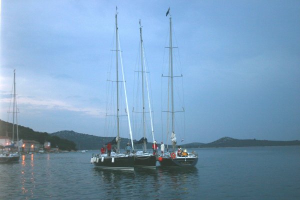 Auch dieses Jahr wurde Brac nicht gerundet, die Boote verteilten sich im Splitski Kanal, von Povlja über Omis bis Sutivan, von Split bis Trogir und Drvenik wurde navigiert und gepeilt. Bei Bora bis gut 5 Bft ging es dann im Morgengrauen Richtung Rogoznica, wo sich ein be8liches Paket bildete und auch am Paket manövriert wurde.