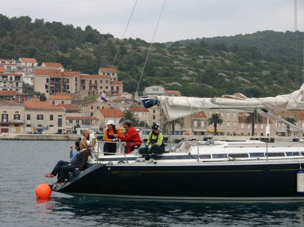 Nachdem die Boote gegen 1400 Uhr unter Segel abgelegt hatten, schlief der Wind langsam ein, sodaß die Rückfahrt zum Großteil unter Maschine, Gott sei Dank aber bei ruhigem Wasser, stattfand. Durch den direkten Kurs landeten fast alle Boote noch vor dem Morgengrauen an, damit waren auch alle rechtzeitig beim wiederum sehr freundlichen Hafenkapitän von Vis und bekamen umgehend die Fahrterlaubnis. Etwas zeitaufwendiger aber nicht weniger freundlich war dann die Abwicklung mit Zollbehörde und Grenzpolizei.