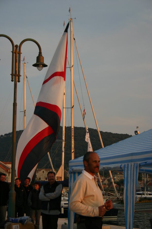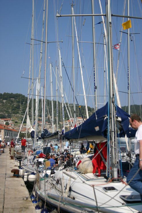 Am nächsten Morgen, mit anfangs etwas Nebel, wurde von einigen Booten wieder geübt, dann ging es bei leichtem Wind und unter Manövern Richtung Hvar und weiter nach Brac und Solta, wo mit Einbruch der Dunkelheit die Nachteinsteuerungen begonnen wurden. Ziel war wiederum Rogoznica, wo nunmehr Muringleinen für etwa 15 Boote ausgelegt sind. Die letzten Boote trafen gegen 0900 ein, es gab ein kurze Skipperbesprechung. Als Startposition für die Abschlussregatta wurde diesmal das Gebiet vor Primosten gewählt, um den Freunden vom Regatta-Training die Anreise etwas zu verkürzen.