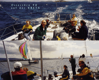 Übungstörn 98, Ausgangshafen Hramina/Murter. Törn-Beginn: Sa, 4.4.98, Ende: Sa, 11.4.98, 14 Jachten + Kreta.